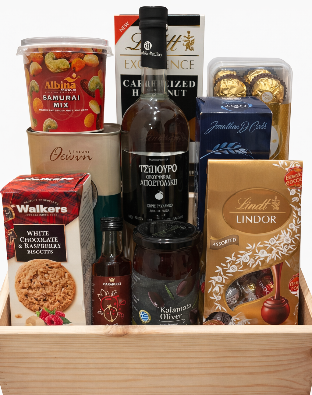 En tidlös presentkorg fylld med en läcker blandning av söta och salta godsaker – perfekt för alla tillfällen.