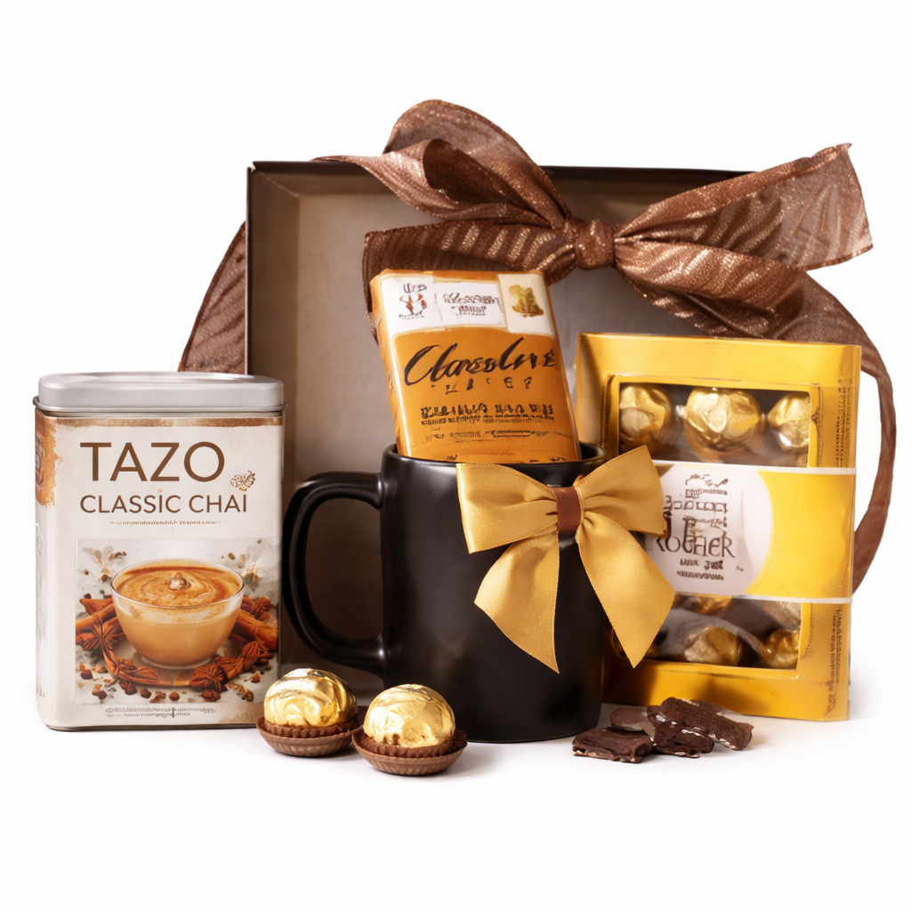 En mysig och tröstande presentask med fyllig choklad, aromatiskt chai-te och omtänksamma detaljer – perfekt för avkopplande stunder, tackpresenter eller alla tillfällen som kräver värme och omtanke.