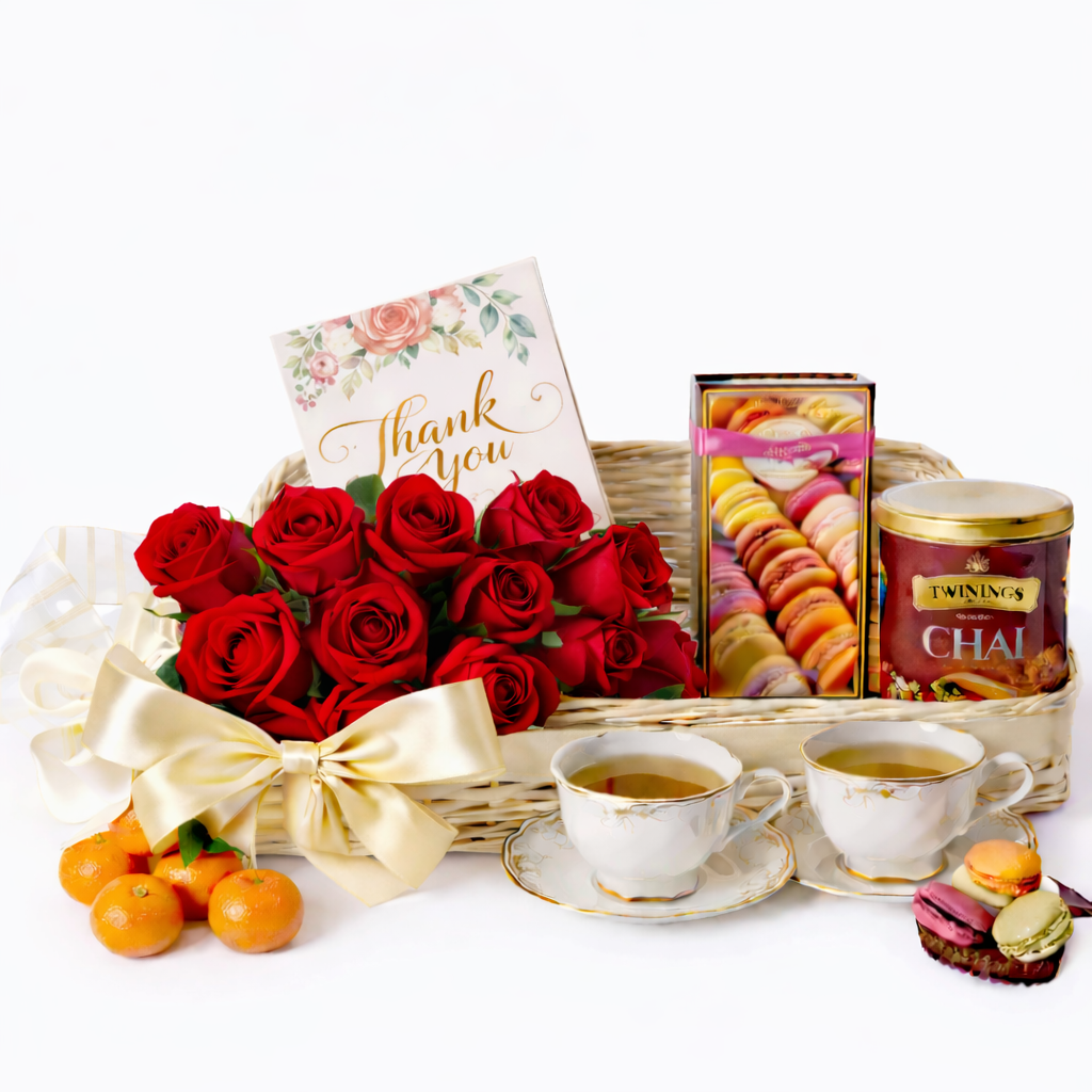 Ett vackert och romantiskt presentset som kombinerar färska rosa rosor med eleganta godsaker till testunden – perfekt för födelsedagar, årsdagar, firanden eller helt enkelt för att visa någon att du bryr dig. Presentinslagning och ett gratulationskort ingår.